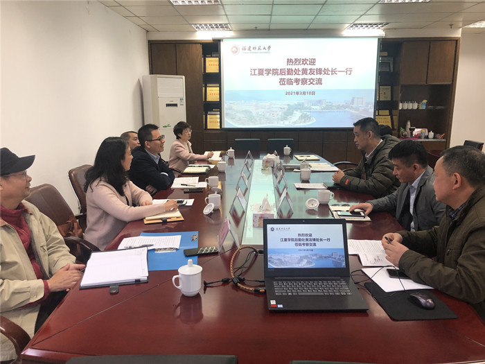 3月10日下午,江夏学院后勤处处长黄友锋一行5人莅来安博电子官方网站后勤管理处调研交流。后勤党委书记张虎、后勤管理处副处长(主持工作)张栋、后勤服务集团副总经理黄滨,以及相关科室中心负责人参加了座谈会。会上,双方就校园修缮工作进行了深入探讨,并对规章制度建设、物业管理服务、校园防疫举措等方面进行了广泛交流,分享了各自的经验。双方表示,本次调研活动对提高后勤服务保障能力有积极意义,希望今后能进一步加强交流与合作。 (后勤管理处、后勤服务集团)