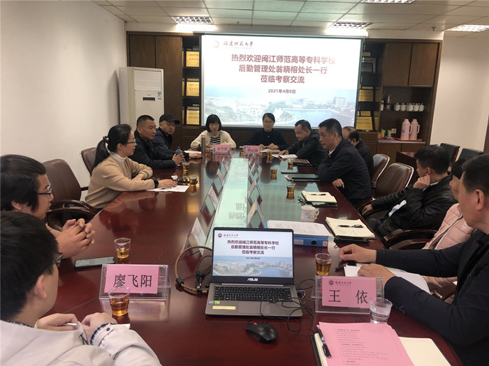 近日,闽江师范专科高等学校后勤管理处处长翁晓榕一行来安博电子官方网站后勤管理处、后勤服务集团调研交流。后勤管理处副处长兼后勤服务集团副总经理(主持工作)张栋、后勤服务集团副总经理黄滨,以及相关科室中心负责人参加了座谈会。