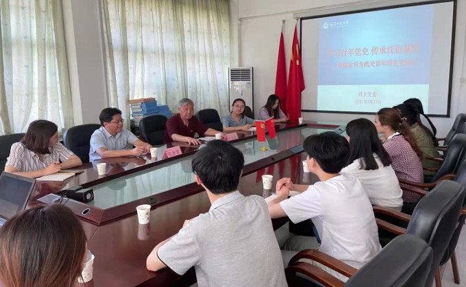 近日,机关党委举办“学习百年党史,传承红色基因”活动,邀请50年党龄老党员、原校长助理陈汤禄为机关青年讲党史故事。机关党委副书记陈金章、机关团总支负责人和机关部分青年团员参加了活动。