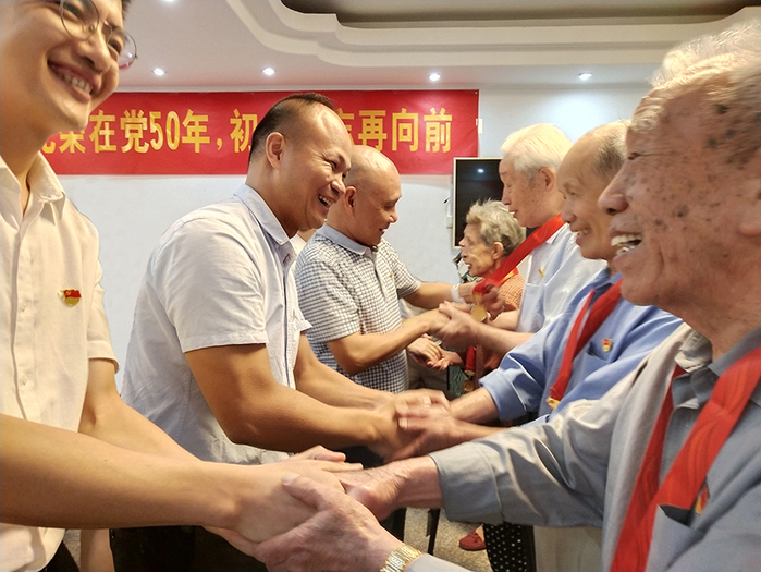 副总经理陈明铿宣读了13名“光荣在党50年”党员名单。他们当中最年长的已有百岁,党龄最长的达64年,这些老党员是公司历史发展的见证者和参与者,是公司最宝贵的财富。