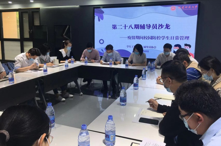 活动中,与会人员围绕如何统筹做好校园疫情防控和学生日常管理工作展开交流与探讨。文学院辅导员张晓岚分享了学院疫情防控工作中全员参与和定期清查的经验,介绍了疫情期间团学工作和学风建设开展情况;经济学院辅导员张翼针对线上晚点和走访宿舍等工作中遇到的难点,分享了学院“三加强三严格”的好做法;生命科学学院辅导员王怡坤介绍了学院“楼长-层长-宿舍长”三级体系的宿舍楼网格化管理情况;法学院辅导员张桢远分享了学院打造“党建+”“管理+”“服务+”工作体系,打好疫情防控组合拳,坚守疫情防控安全线的经验。此外,辅导员们还纷纷就疫情防控期间校园防控学生数据统计、健康管理以及辅导员“四进两谈一联”等分享了经验并提出意见建议。